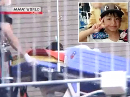 Yamato Tanooka (ảnh nhỏ) nằm trên băng ca y tế sau khi được tìm thấyĐiều đáng nói là cậu bé vẫn nói chuyện khá mạch lạc và tỉnh táo, chỉ có vài vết xước nhẹ ở tay, chân, có dấu hiệu bị mất nước nhẹ, và đương nhiên là trong tình trạng bị suy dinh dưỡng.