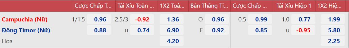 Soi kèo nhà cái nữ Campuchia vs nữ Timor Leste. Nhận định bóng đá nữ Đông Nam Á (18h00, 13/7). Dự đoán bóng đá nữ Campuchia vs nữ Timor Leste. Tỷ lệ kèo nữ Đông Nam Á