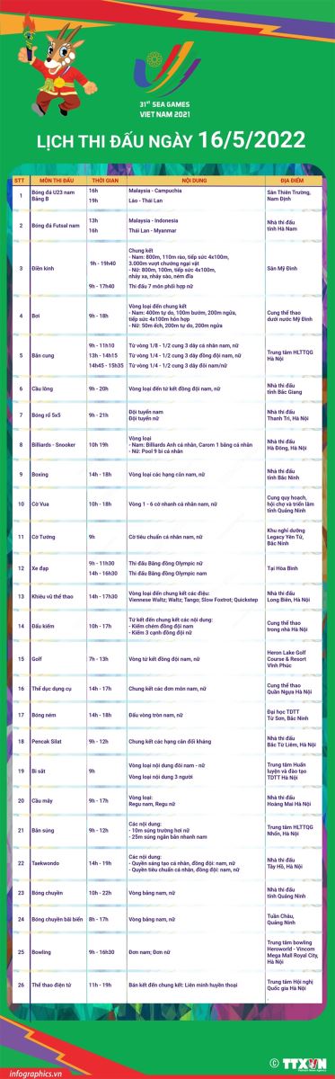 LỊCH THI ĐẤU CỦA ĐOÀN TTVN ngày 16/5
