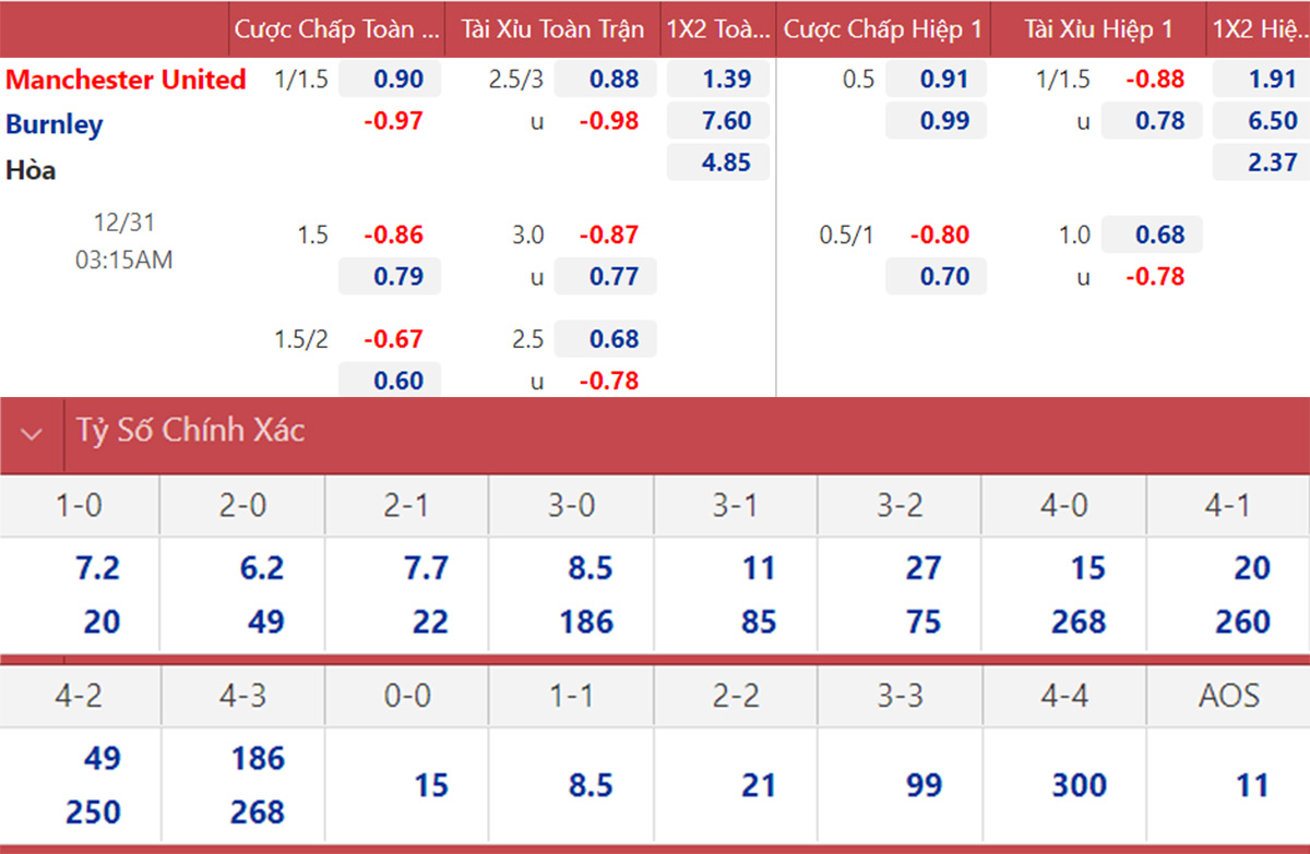 * 03h15, 30/12: MU vs Burnley (K+Sport1)