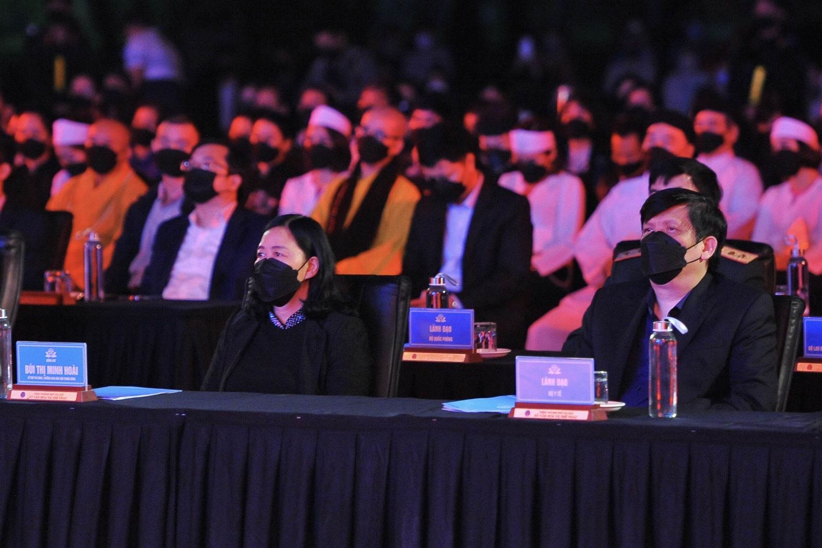Tại Công viên Thống Nhất, Bí thư Trung ương Đảng, Trưởng Ban Dân vận Trung ương Bùi Thị Minh Hoài và Bộ trưởng Bộ Y tế Nguyễn Thanh Long