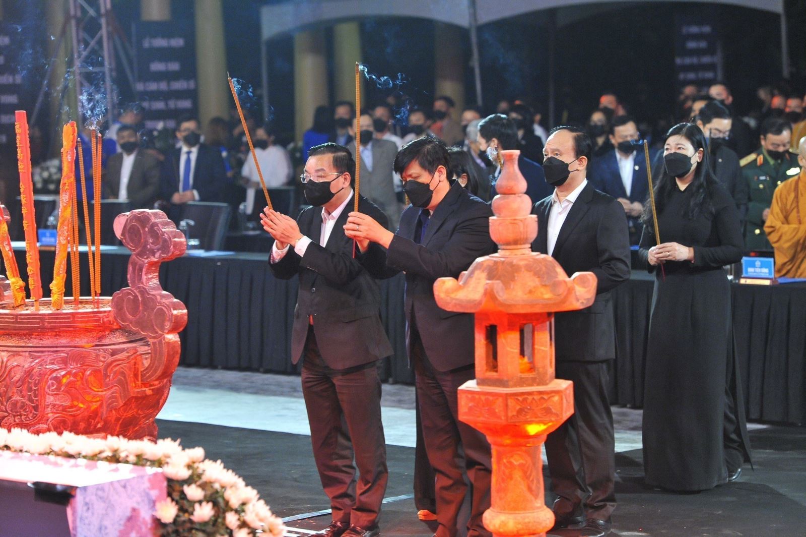 Bộ trưởng Bộ Y tế Nguyễn Thanh Long, Chủ tịch UBND TP Hà Nội Chu Ngọc Anh dâng hương.