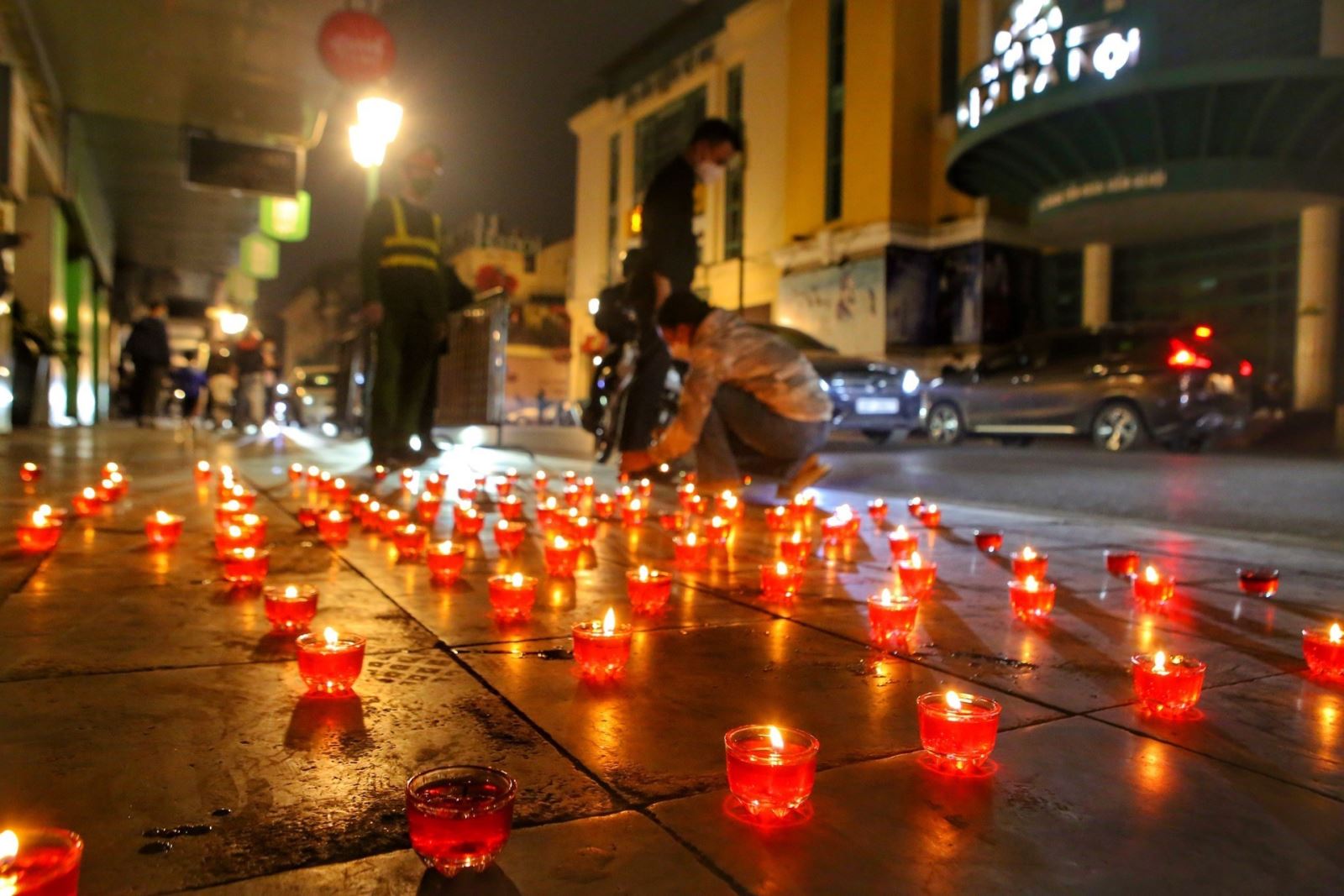 Trên phố Tràng Tiền (quận Hoàn Kiếm), người dân Hà Nội thắp nến tưởng niệm những chiến sĩ, đồng bào đã hy sinh, tử vong vì dịch COVID-19.