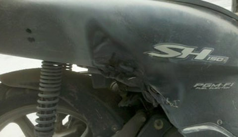 Chiếc xe SH bị cháy xém phần mạn sườn - Ảnh: Dân trí