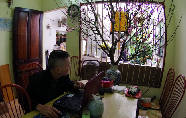 Trong khi đó, ông Nguyễn Đình Tuấn, chủ hộ đang thích thú ngồi bật video tiếng chim trên laptop để luyện tiếng cho con họa mi mới sắm được. Tết đối với ông cơ bản đã đủ với đào, quất, chim và bia, rượu