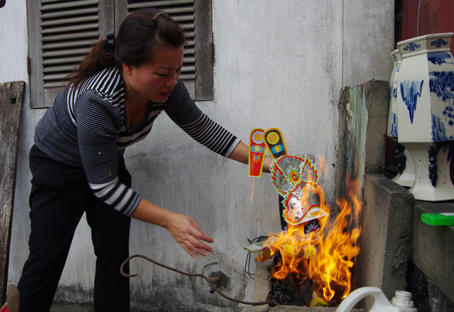 Đây là công việc của bà Nguyễn Thị Ngôn, người lớn tuổi nhất trong gia đình. Bà cho biết, truyền thống của gia đình là không cúng cá chép bởi nếu mua cá chép về đợi thắp hương rồi mới thả thì cá có thể chết. Vậy thì không tốt cho lắm. Tuy nhiên, cũng có năm bà tiện đi chợ, thấy ai bán cá chép thì mua luôn rồi đem thẳng ra Hồ Gươm thả coi như phóng sinh